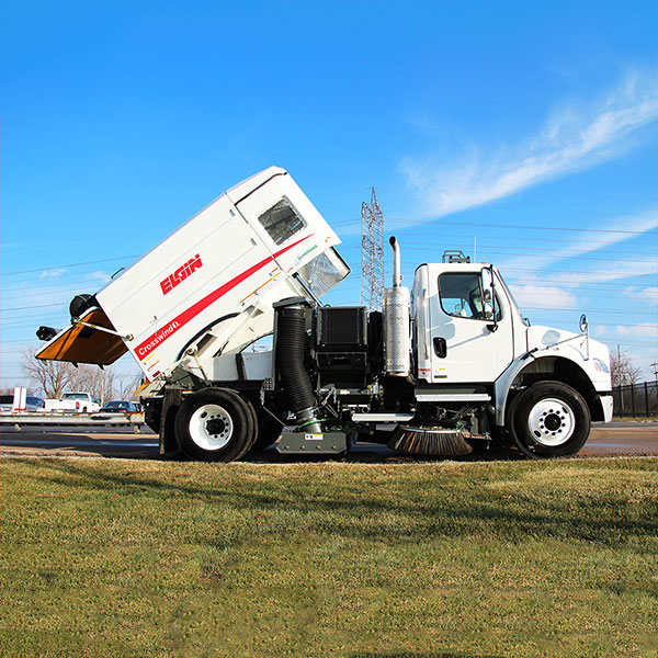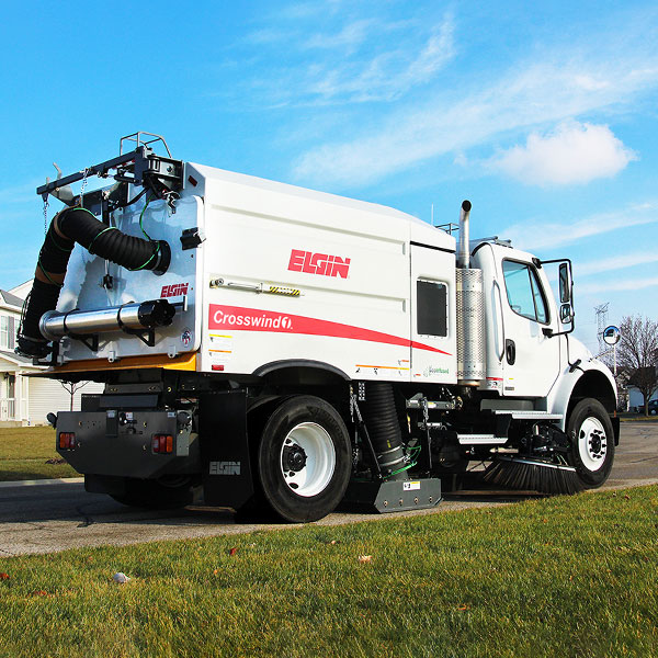 Elgin regenerative air sweepers give contractors, municipalities, and airports a powerful sweeper with versatility and productivity. The Elgin® Crosswind1® efficiently cleans large flat paved areas such as streets, parking lots, and airport runways. Mounted on the short-wheelbase of either conventional or cab-over chassis, the Elgin Crosswind1 is operated by simple rocker switches and equipped with all the essentials to get the job done right. A combination of a large 8 yd3 (6 m3) hopper and 240 gal (908 L) water tank, plus excellent fuel efficiency, allow maximum productivity between trips to dumping, re-watering, and fueling. The Crosswind1 steps ahead as the market leader with innovative single-engine technology. This new easy-to-use design, with single-button operation, will increase productivity and decrease maintenance time and costs. The Crosswind1 sweeper is also effective in the frequent maintenance of permeable pavement. This sweeper is versatile and can easily pick up litter and chip seal. The large pickup head makes it desirable for many applications.